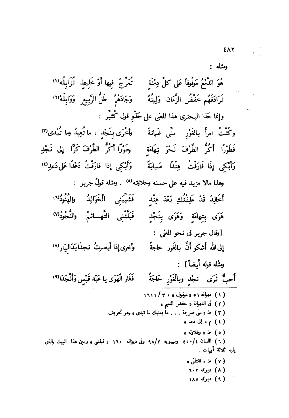 فطوراً أكر الطرف نحو نهامةٍ ... وطوراً أكر الطرف كراً إلى نجد