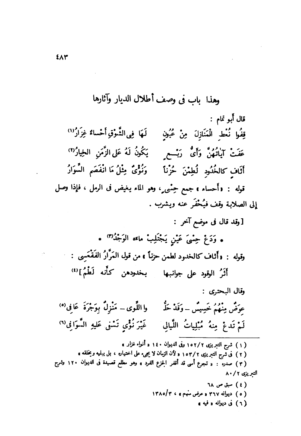 قفوا نعطي المنازل من عيونٍ ... لها في الشوق أحساءٌ غزار
