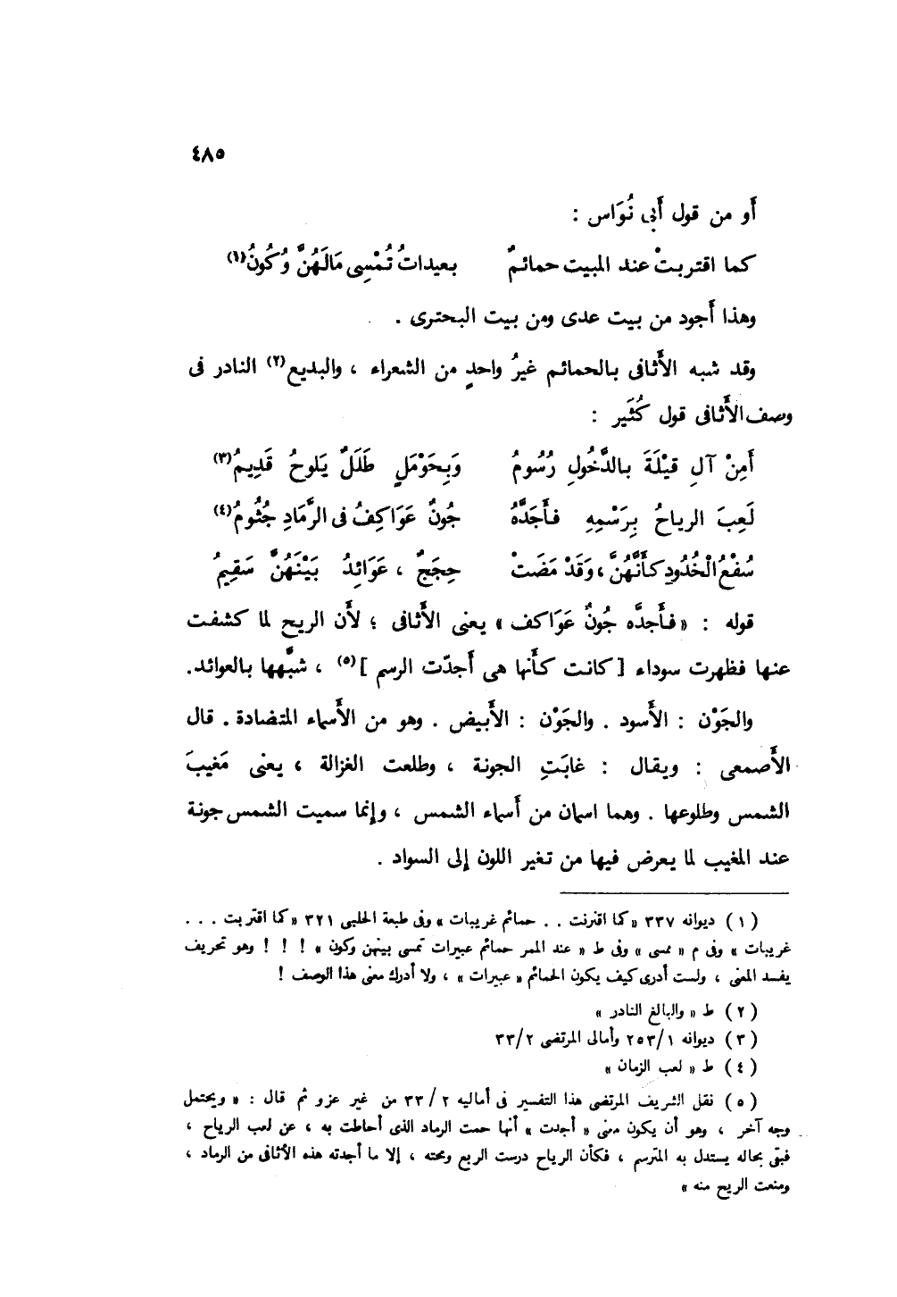 وقد شبه الأثافي بالحمائم غير واحدٍ من الشعراء، والبديع النادر في وصف الأثافي قول كثير: