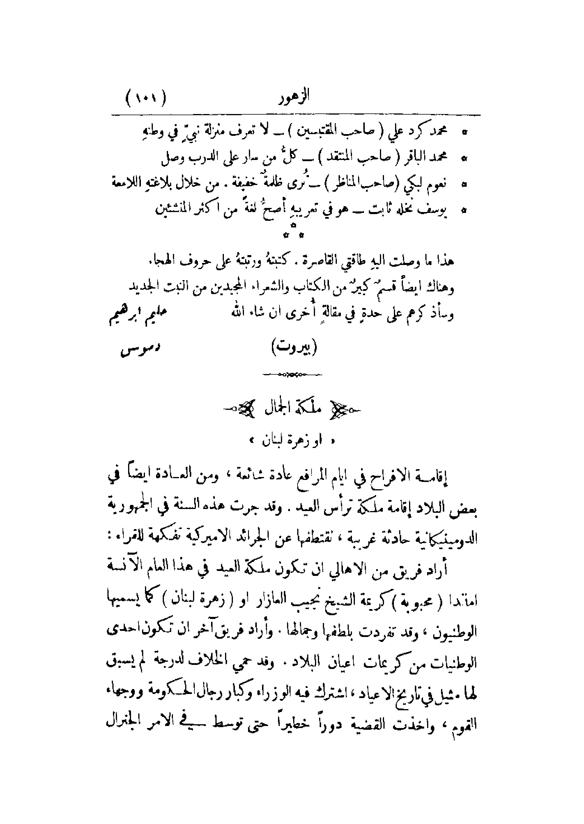 وهناك أيضاً قسم كبير من الكتاب والشعراء المجيدين من النبت الجديد وسأذكرهم على حدة في مقالة أخرى إن شاء الله.