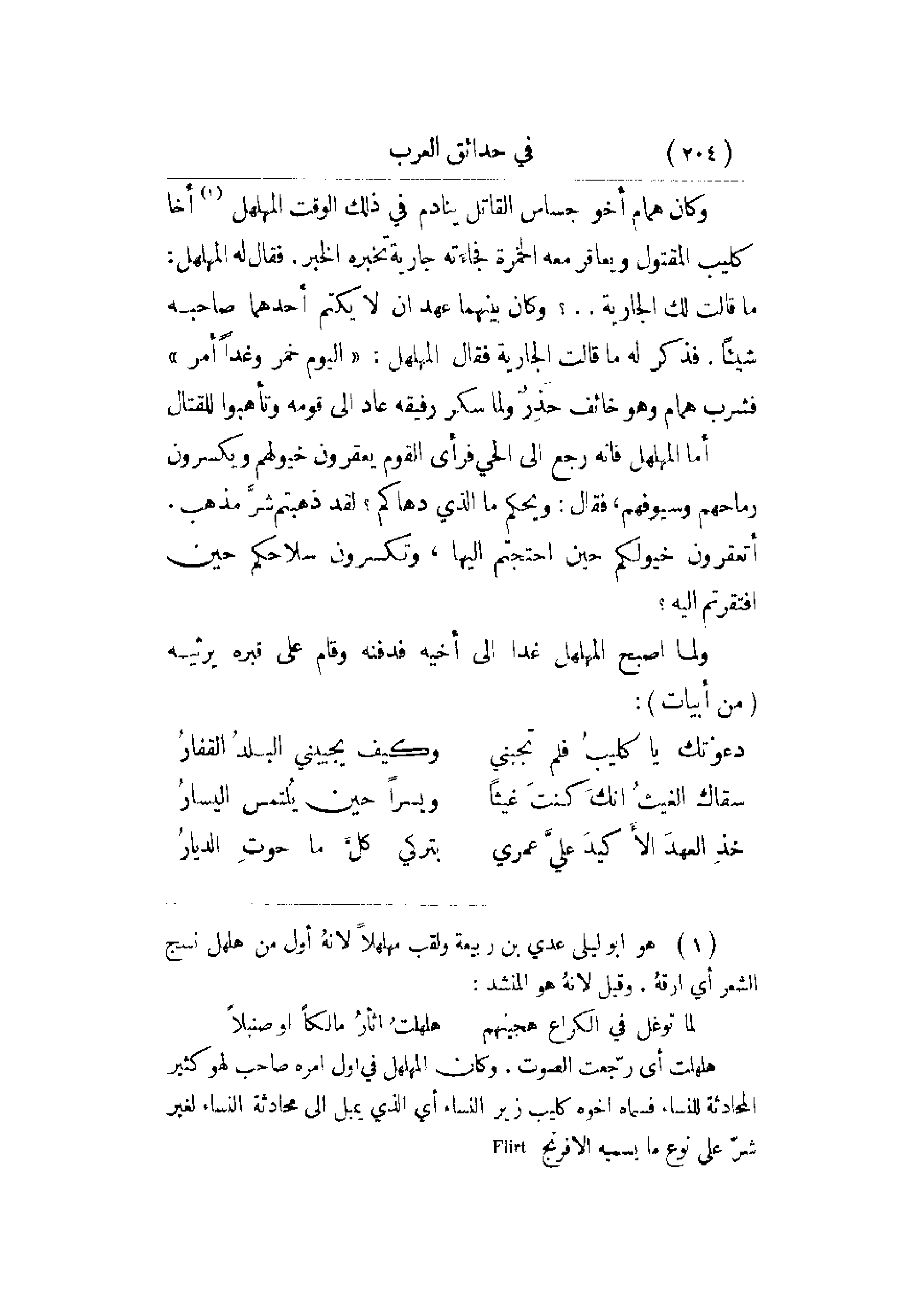 ولما أصبح المهلهل غدا إلى أخيه فدفنه وقام على قبره يرثيه (من أبيات):