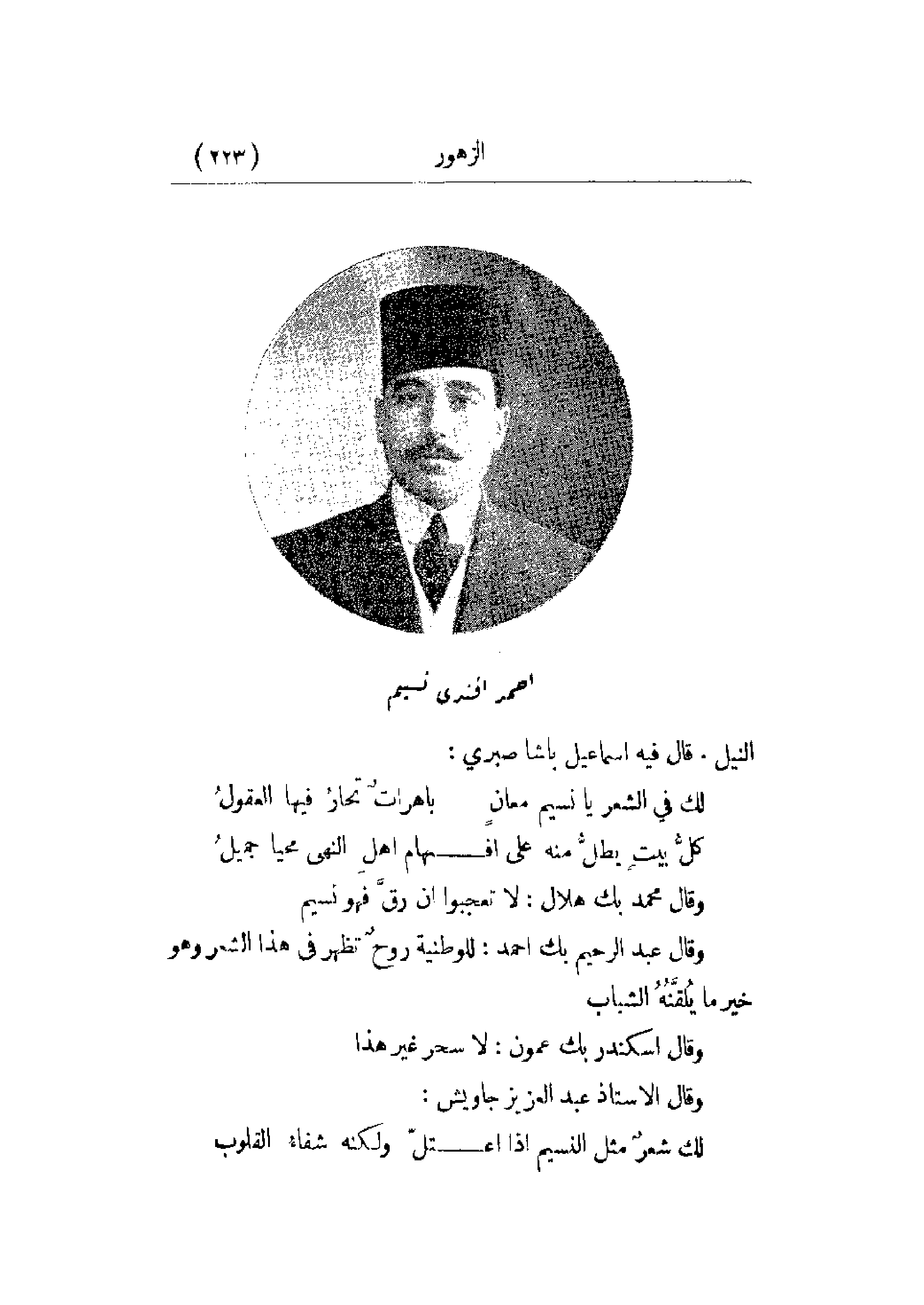 وقال محمد بك هلال: لا تعجبوا أن رق فهو نسيم