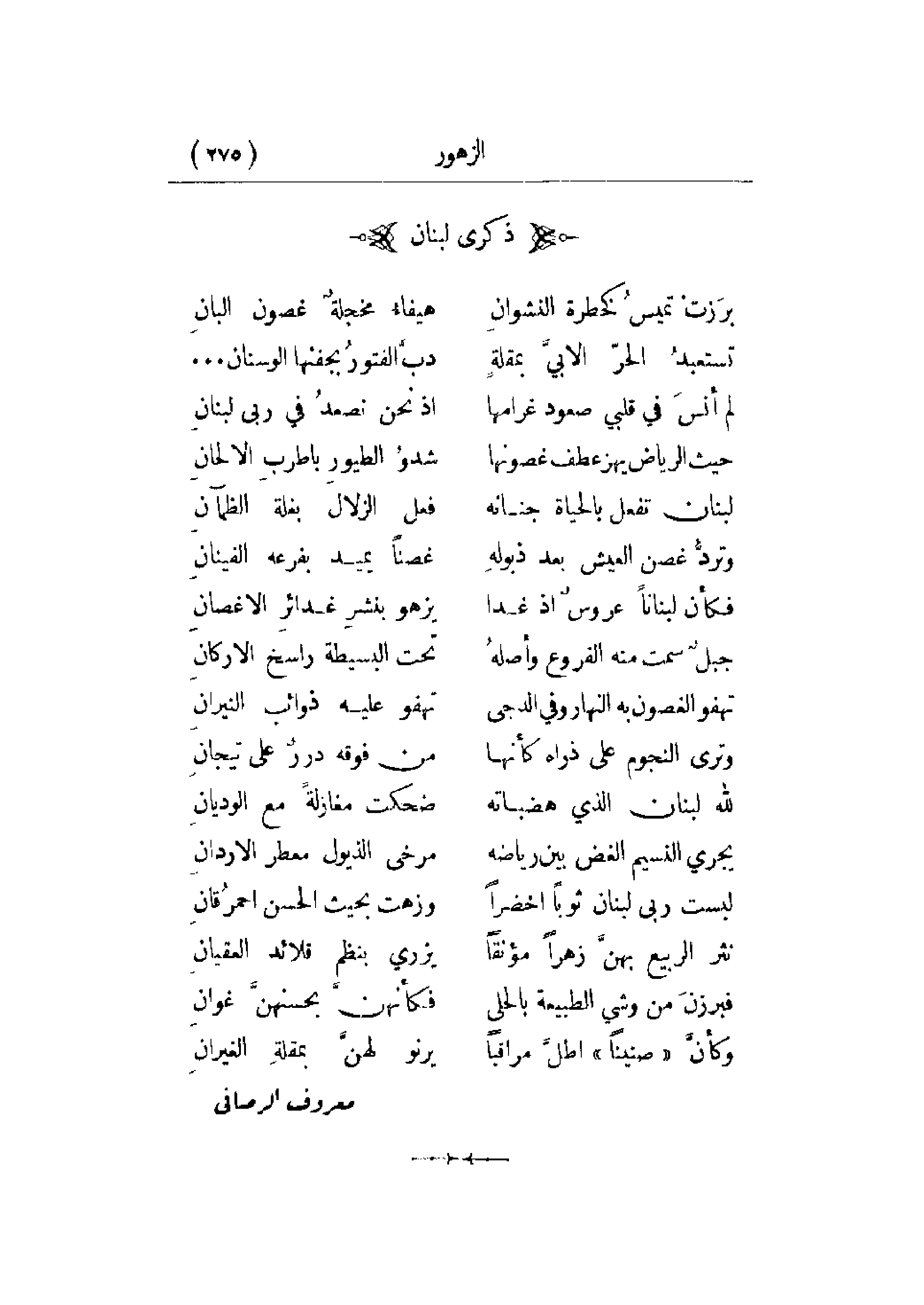 لبنان تفعل بالحياة جنانه ... فعل الزلال بغلة الظمآن