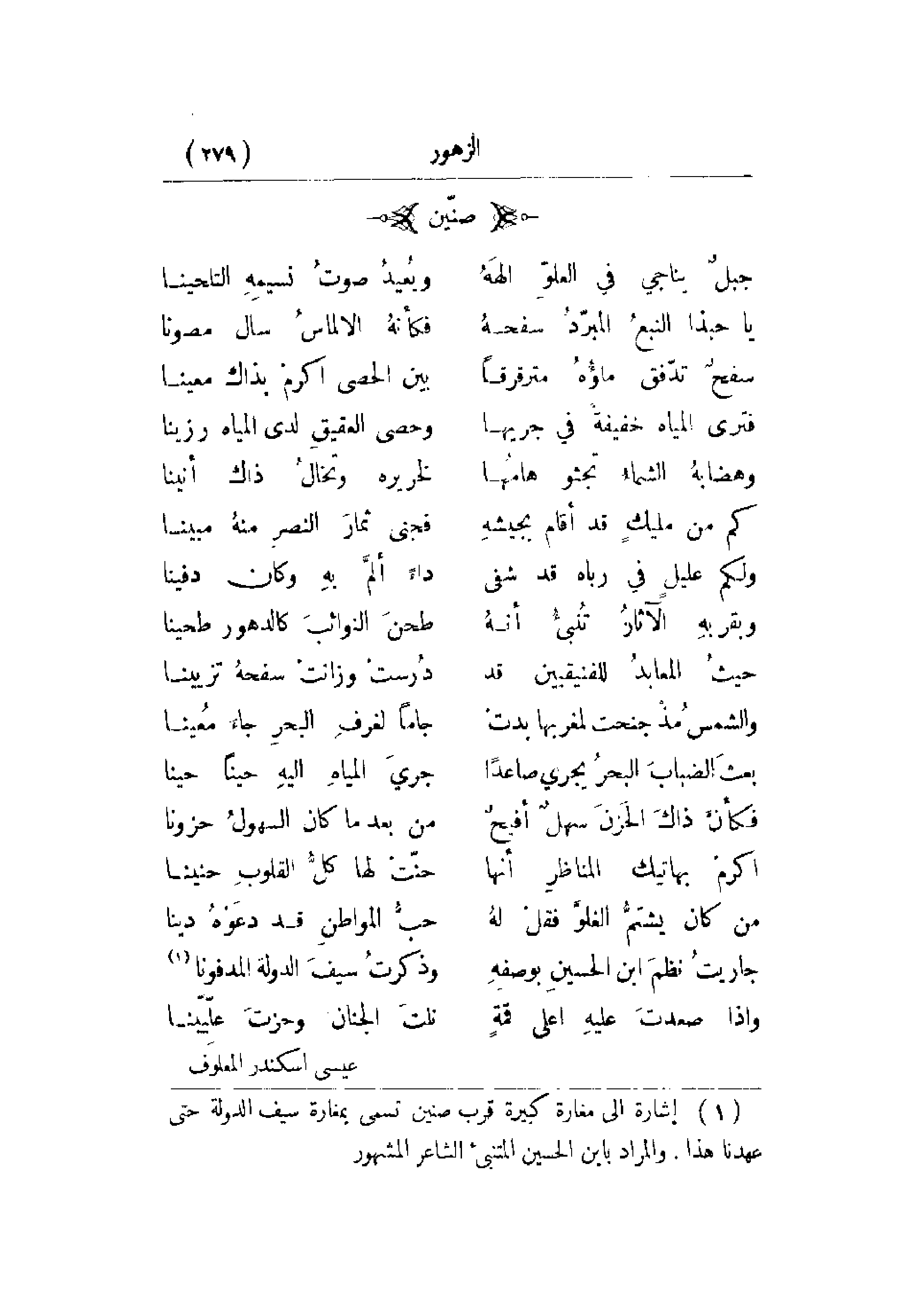 جاريت نظم ابن الحسين بوصفه ... وذكرت سيف الدولة المدفونا