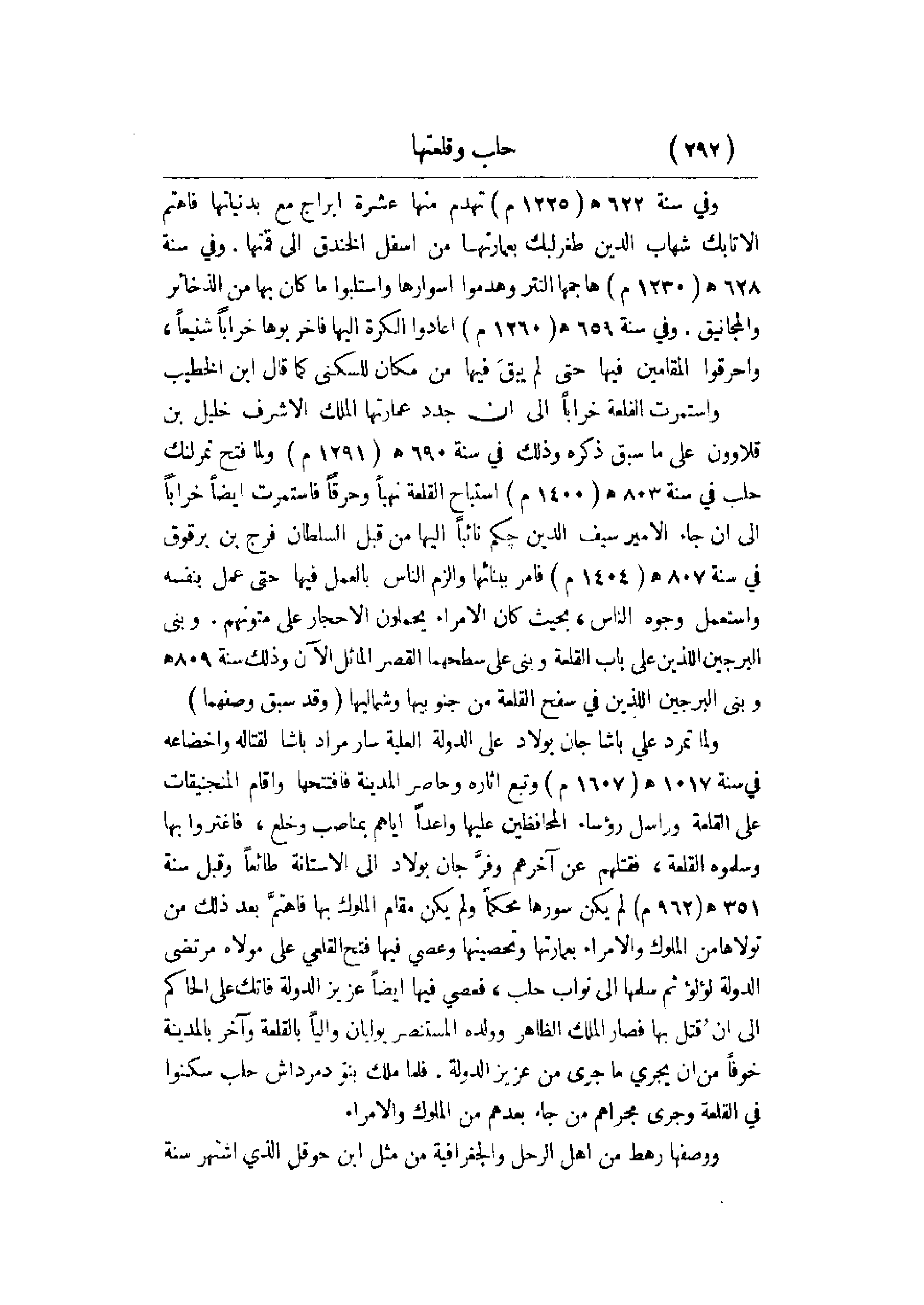 ولما تمرد علي باشا جان بولاد على الدولة العلية سار مراد باشا لقتاله وإخضاعه في سنة 1017 هجري (1607م) وتبع آثاره وحاصر المدينة فافتتحها وأقام المنجنيقات على القلعة وراسل رؤساء المحافظين عليها واعداً إياهم بمناصب وخلع، فاغتروا بها وسلموه القلعة، فقتلهم عن آخرهم وفر جان بولاد إلى الأستانة طائعاً وقبل سنة 351 هجري (962م) لم يكن سورها محكماً ولم يكن مقام الملوم بها فاهتم بعد ذلك من تولاها من الملوك والأمراء بعمارتها وتحصينها وعصي فيها فتح القلعة على مولاه مرتضى الدولة لؤلؤ ثم سلمها إلى نواب حلب، فعصي فيها أيضاً عزيز الدول فاتك على الحاكم إلى أن قتل بها فصار الملك الظاهر وولده المستنصر يوليان والياً بالقلعة وآخر بالمدنية خوفاً من أن يجري ما جرى