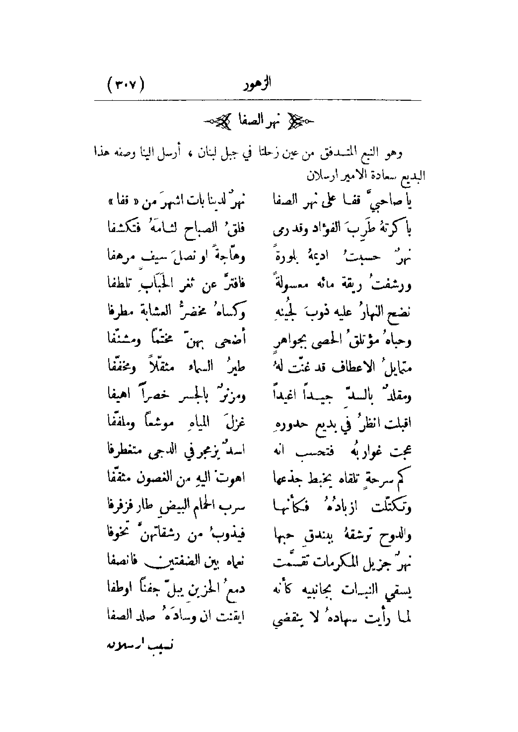 يا صاحبي قفا على نهر الصفا ... نهر لدينا بات أشهر من قفا