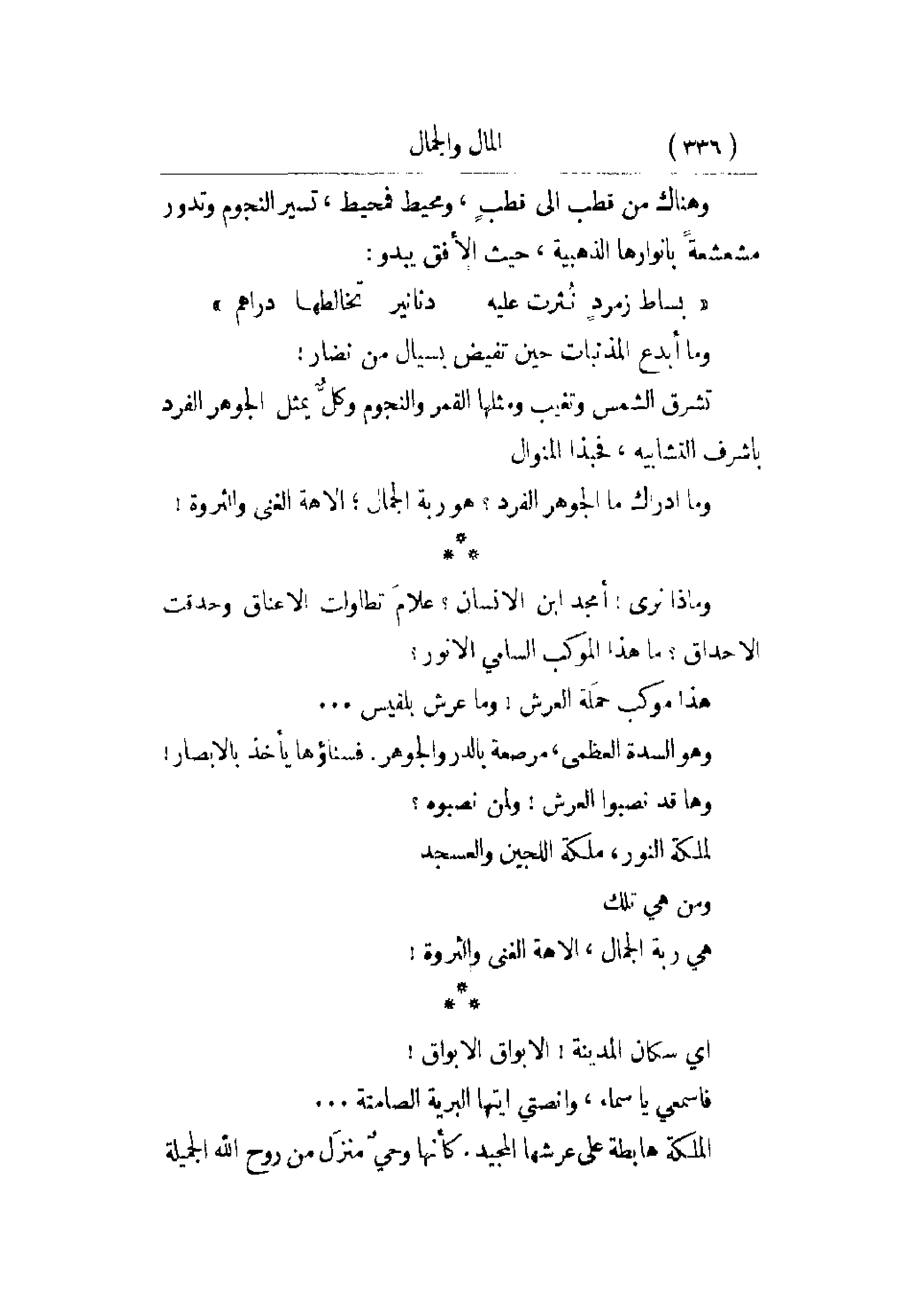 تشرق الشمس وتغيب ومثلها القمر والنجوم وكل يمثل الجوهر الفرد بأشرف التشابيه،