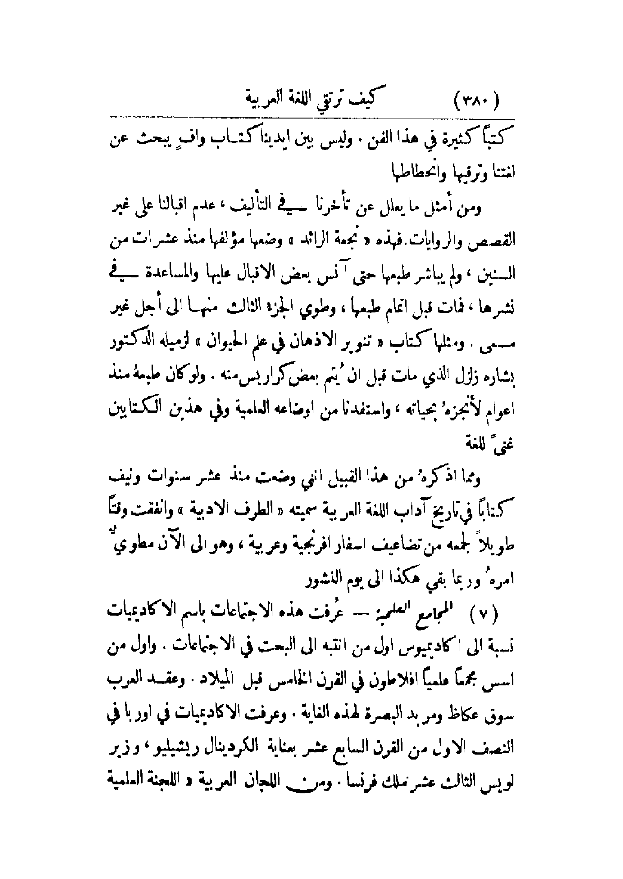 كتباً كثيرة في هذا الفن. وليس بني أيدينا كتاب واف يبحث عن لغتنا وترقيها وانحطاطها.