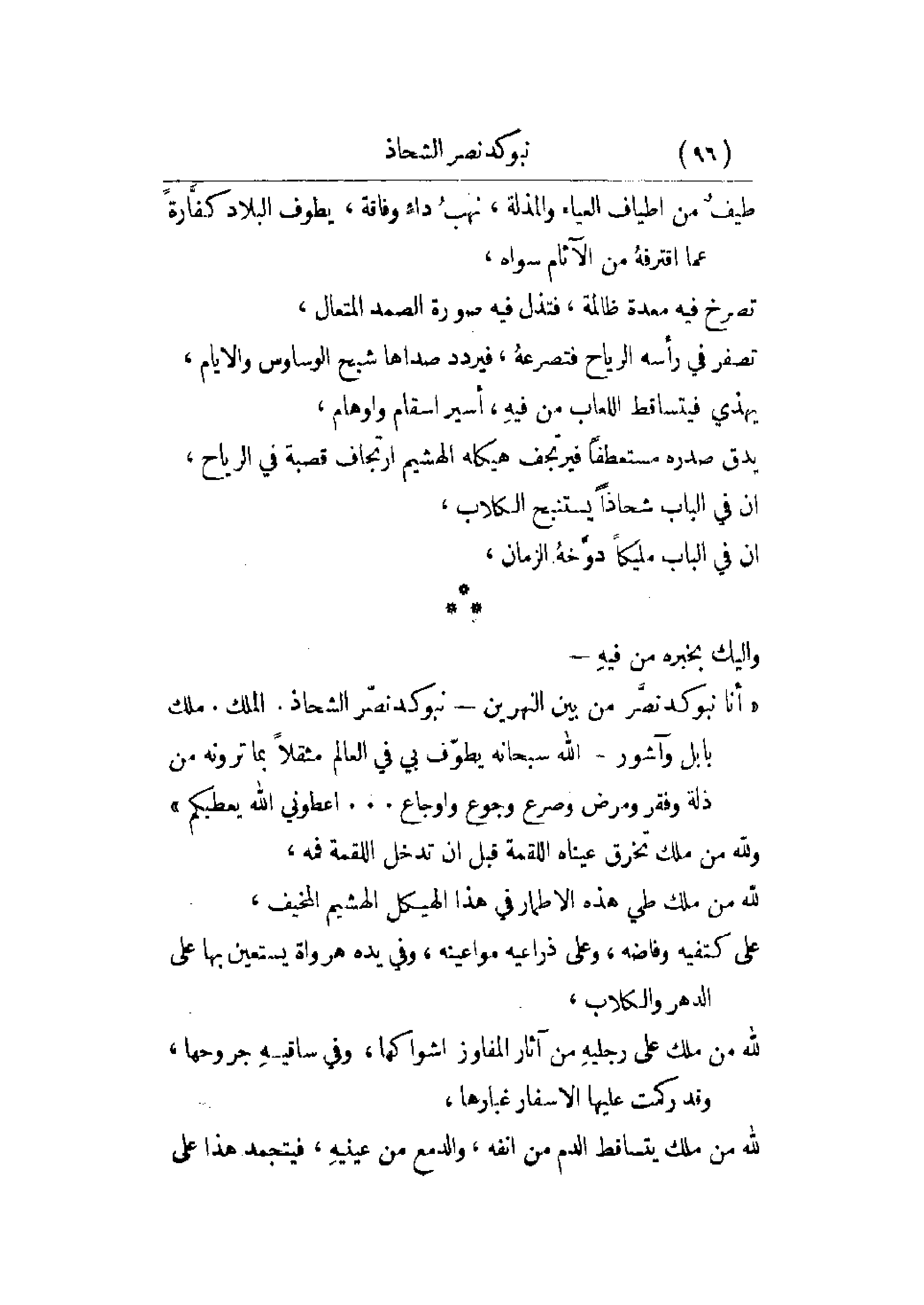 تصفر في رأسه الرياح فتصرعه، فيردد صداها شبح الوساوس والأيام،