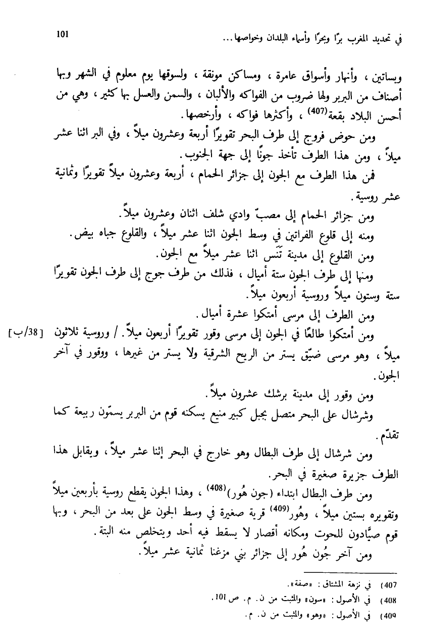 فمن هذا الطرف مع الجون إلى جزائر الحمام، أربعة وعشرون ميلا تقويرا وثمانية عشر روسية.