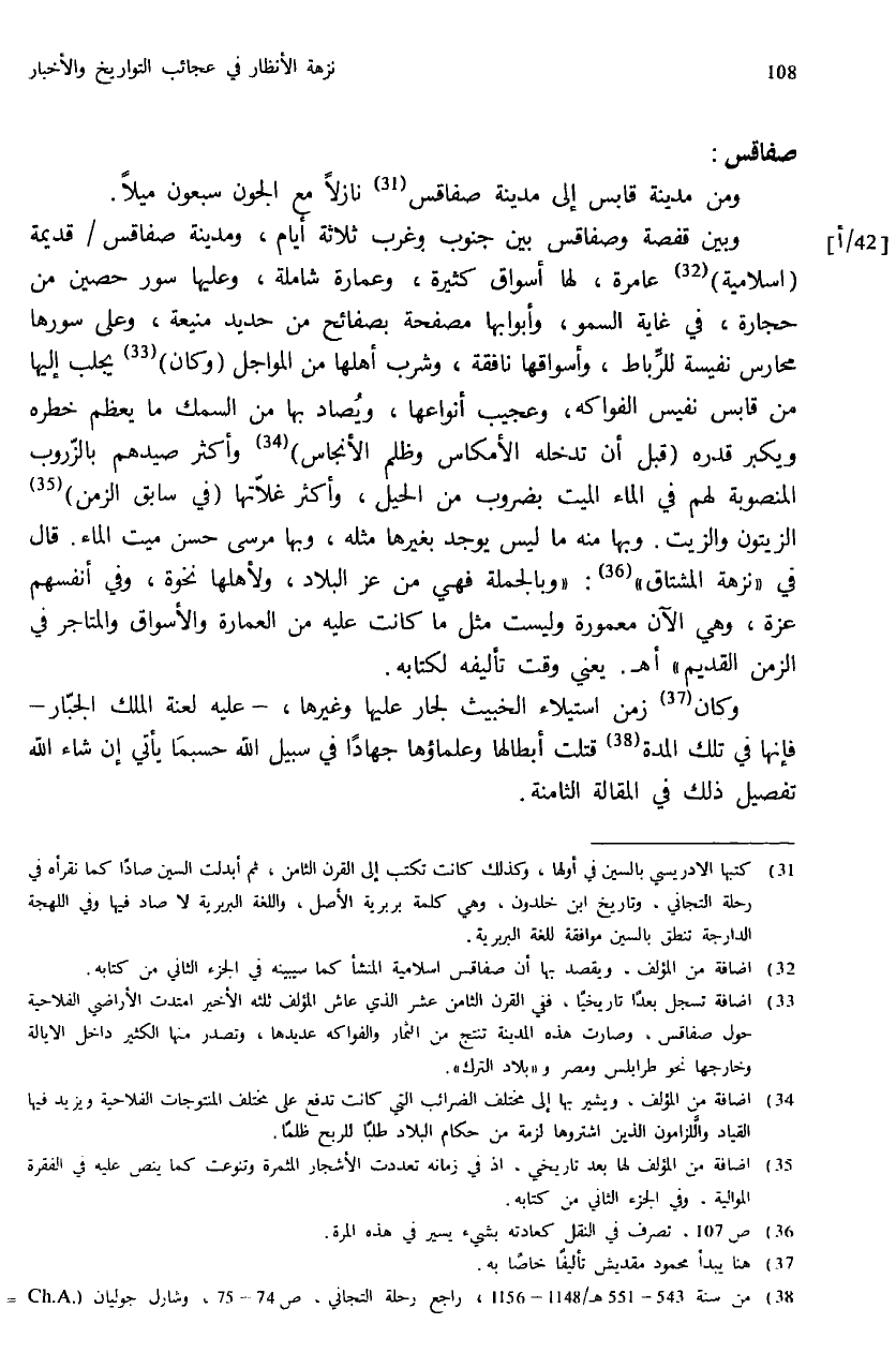 (¬38) من سنة 543 - 551 هـ - 1148 - 1156، راجع رحلة التجاني، ص: 74 - 75، وشارل جوليان (Ch. A Julien)