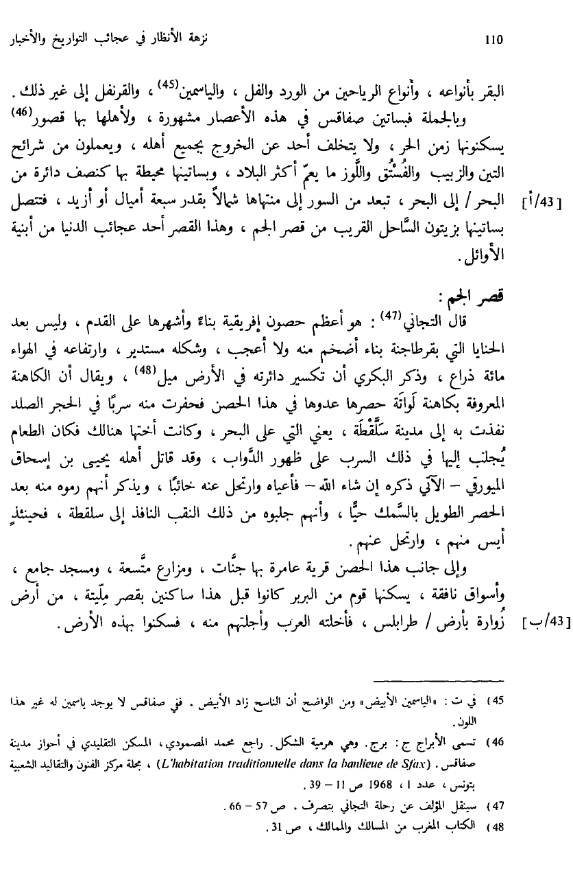 (¬46) تسمى الأبراج ج: برج. وهي هرمية الشكل. راجع محمد المصمودي، المسكن التقليدي في أحواز مدينة صفاقس.