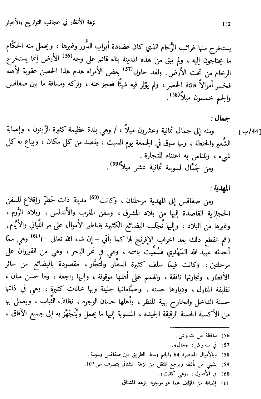 (¬59) ينتهي من تأليفه ويرجع للنقل من نزهة المشتاق بتصرف ص: 107.