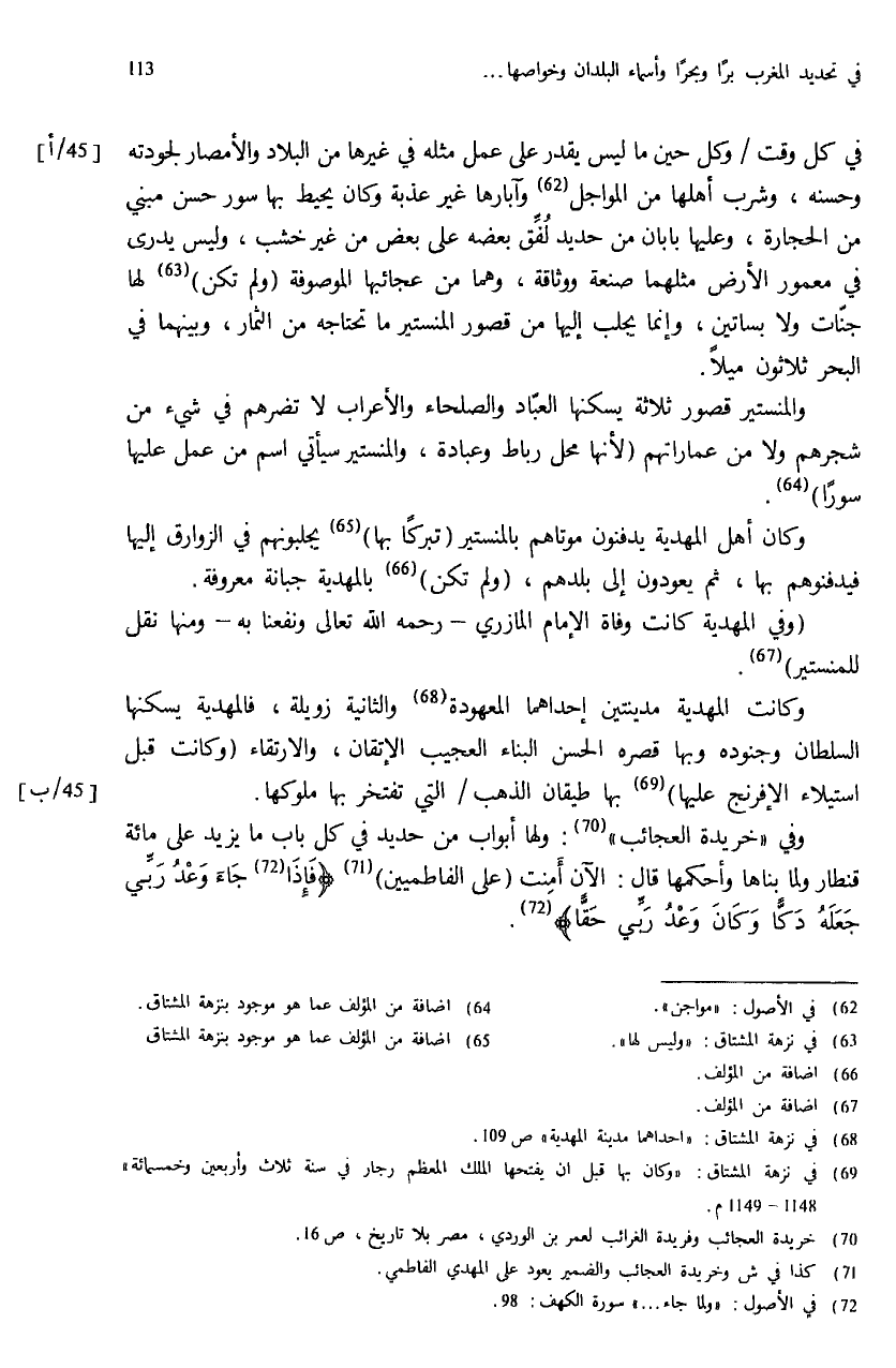 (¬68) في نزهة المشتاق: «احداهما مدينة المهدية» ص: 109.