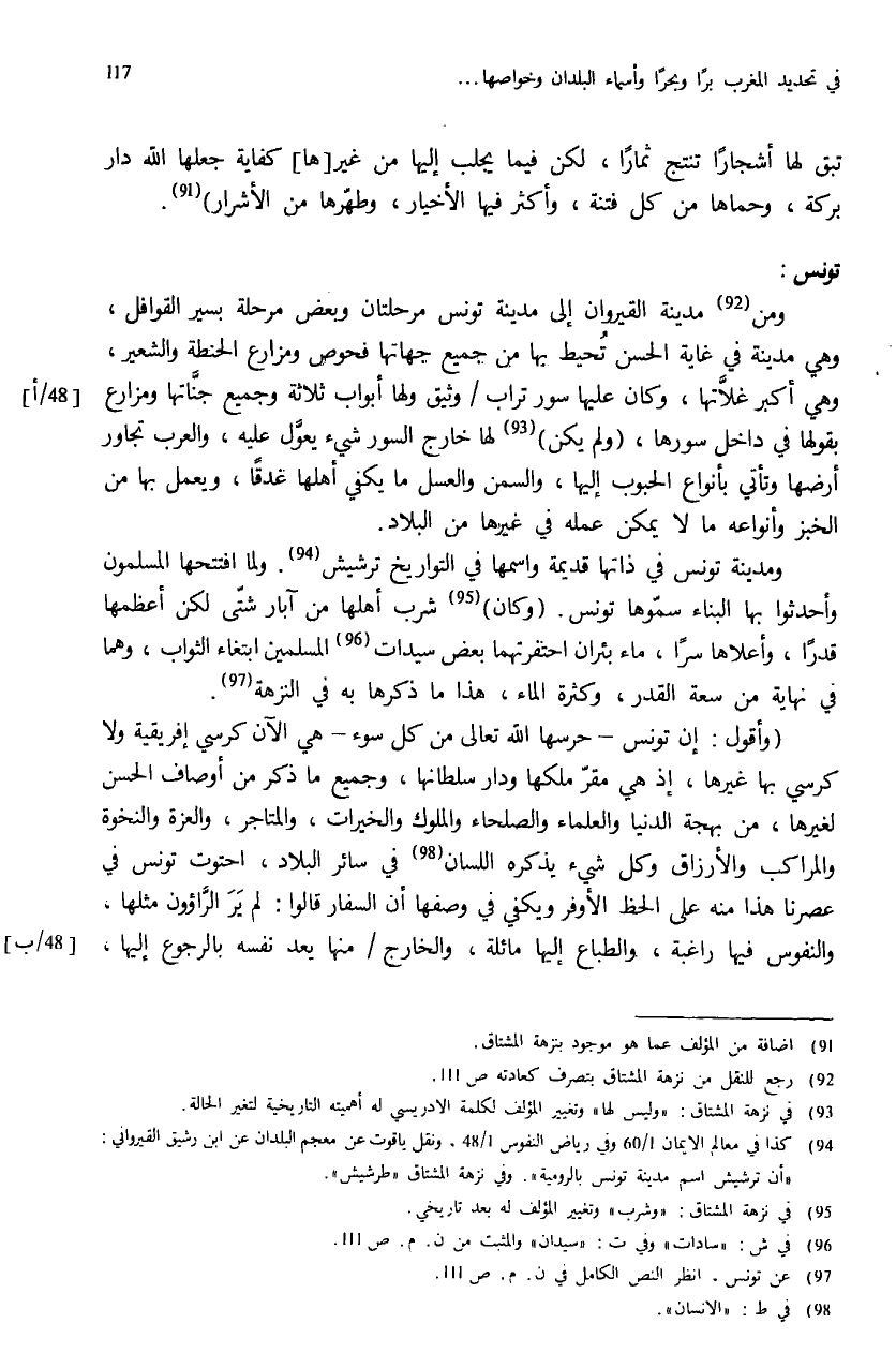 (¬93) في نزهة المشتاق: «وليس لها» وتغيير المؤلف لكلمة الادريسي له أهميته التاريخية لتغير الحالة.