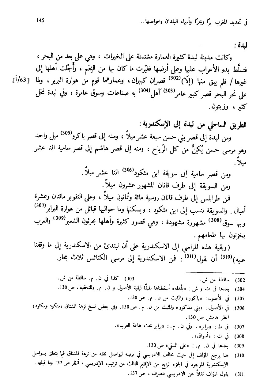 (¬311) يقول المؤلف نقلا عن الادريسي بتصرف، ص: 137.