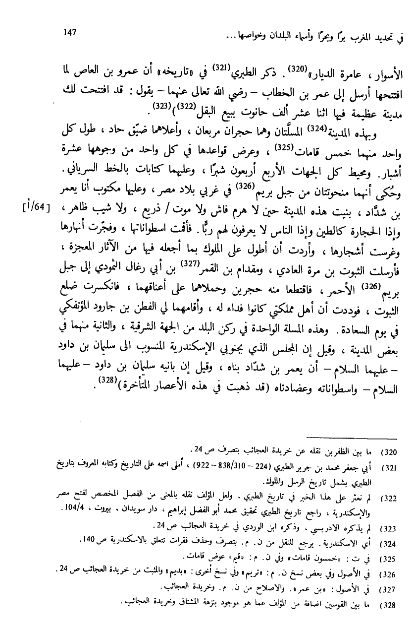 (¬323) لم يذكره الادريسي، وذكره ابن الوردي في خريدة العجائب ص: 24.