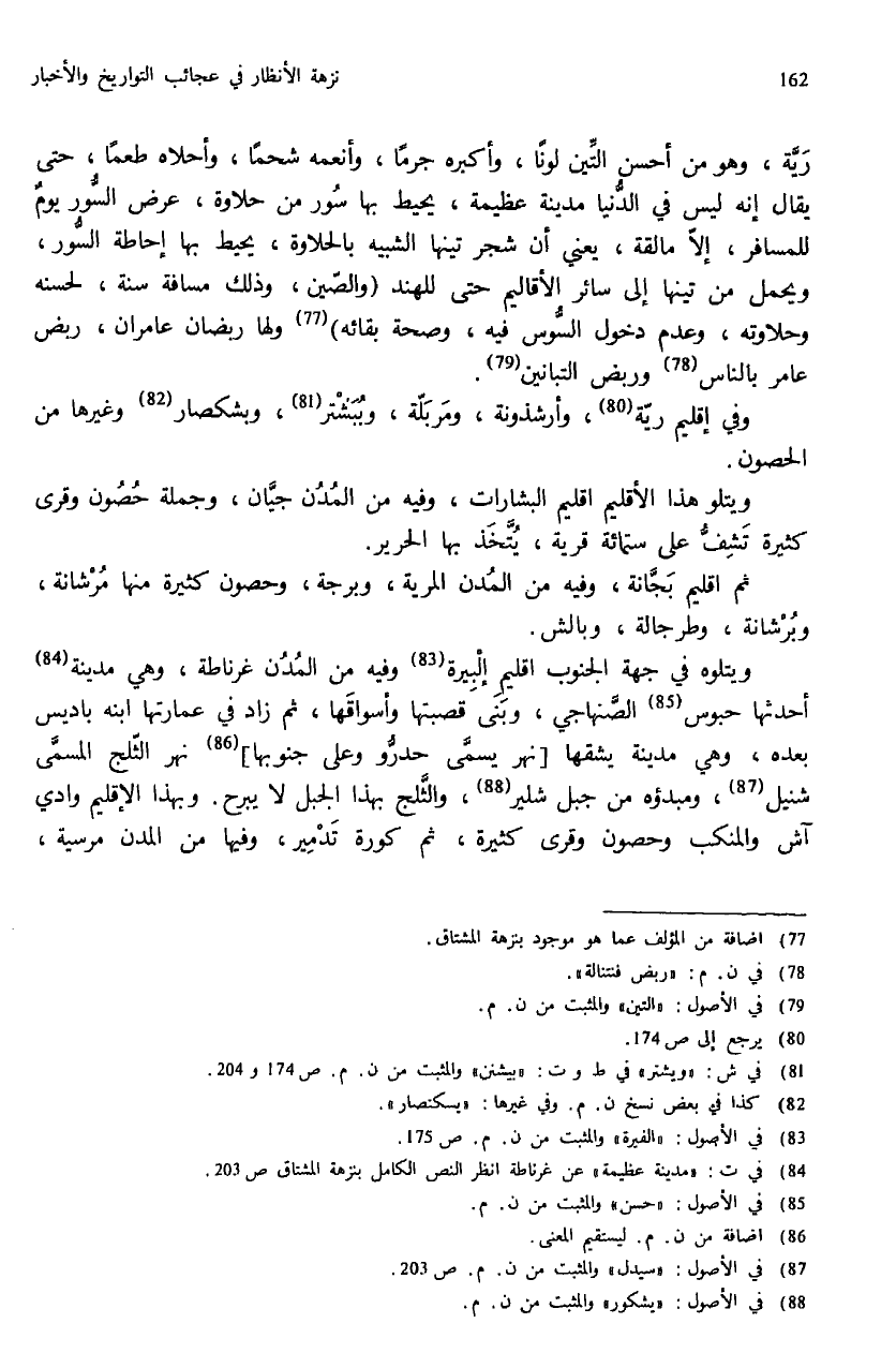 (¬77) اضافة من المؤلف عما هو موجود بنزهة المشتاق.