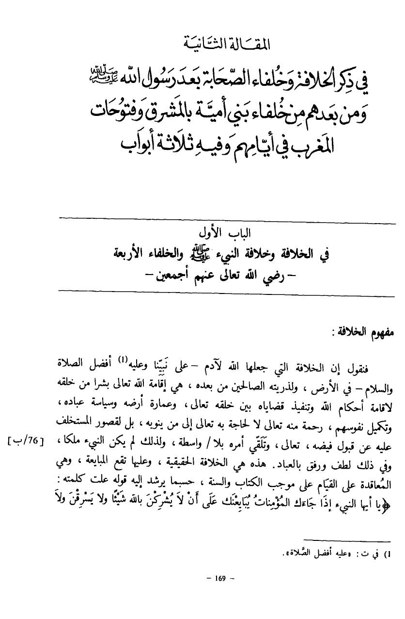 في الخلافة وخلافة النبي صلّى الله عليه وسلم والخلفاء الأربعة - رضي الله تعالى عنهم أجمعين -