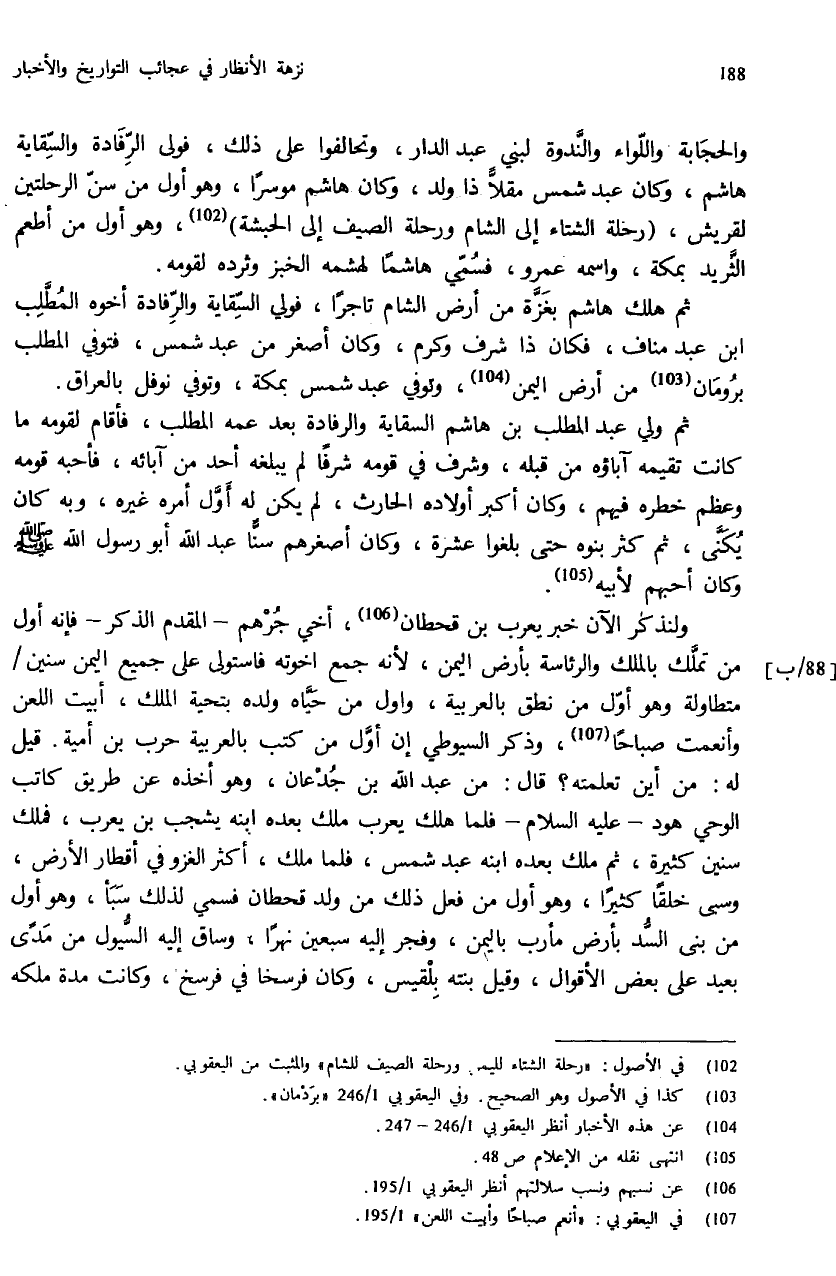 (¬102) في الأصول: «رحلة الشتاء لليمن ورحلة الصيف للشام» والمثبت من اليعقوبي.