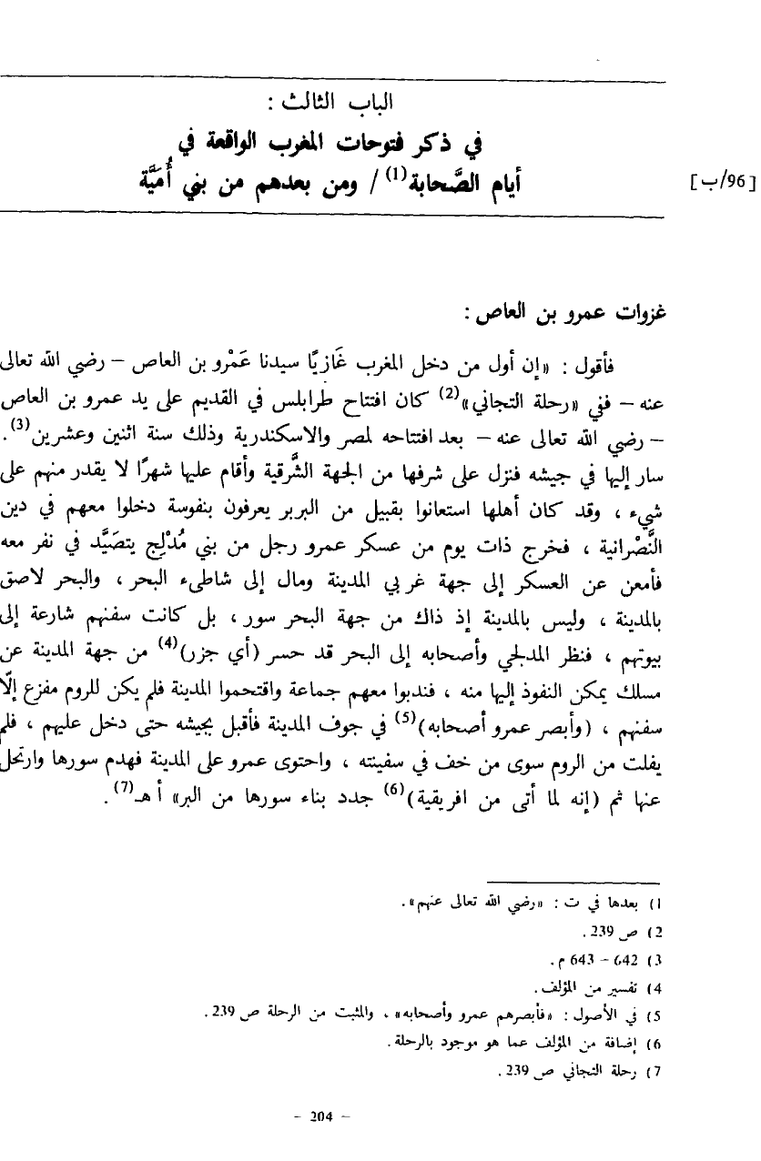 (¬5) في الأصول: «فأبصرهم عمرو وأصحابه»، والمثبت من الرحلة ص: 239.