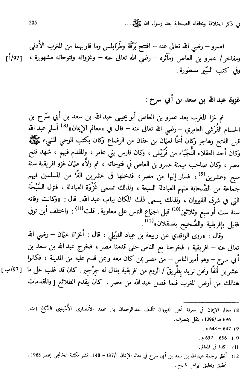 (¬12) أنظر ترجمة عبد الله بن سعد بن أبي سرح في معالم الإيمان 1/ 137 - 140. نشر مكتبة الخانجي بمصر 1968. تحقيق وتعليق ابراهيم شبوح.