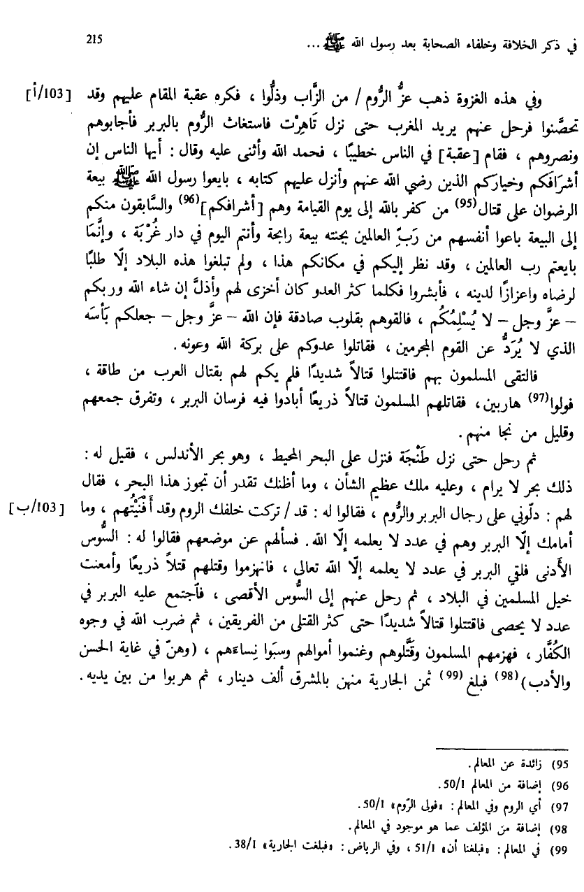 (¬97) أي الروم وفي المعالم: «فولى الرّوم» 1/ 50.