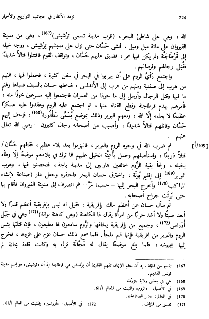 (¬167) تفسير من المؤلف إذ أن معالم الإيمان تفهم القارئ أن ترشيش هي قرطاجنة إذ أن «ترشيش» هو إسم مدينة تونس القديم.