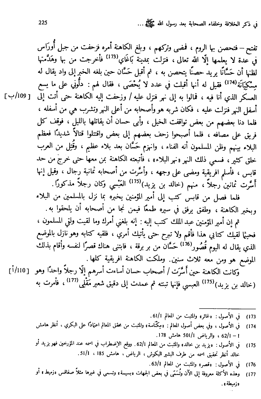 (¬175) في الأصول: «يزيد بن خالد» والمثبت من المعالم 1/ 62. ووقع الإضطراب في اسمه عند المؤرخين فهو يزيد أو خالد أنظر تحقيق اسمه من طرف البشير البكوش، الرياض، هامش 185، 1/ 51.