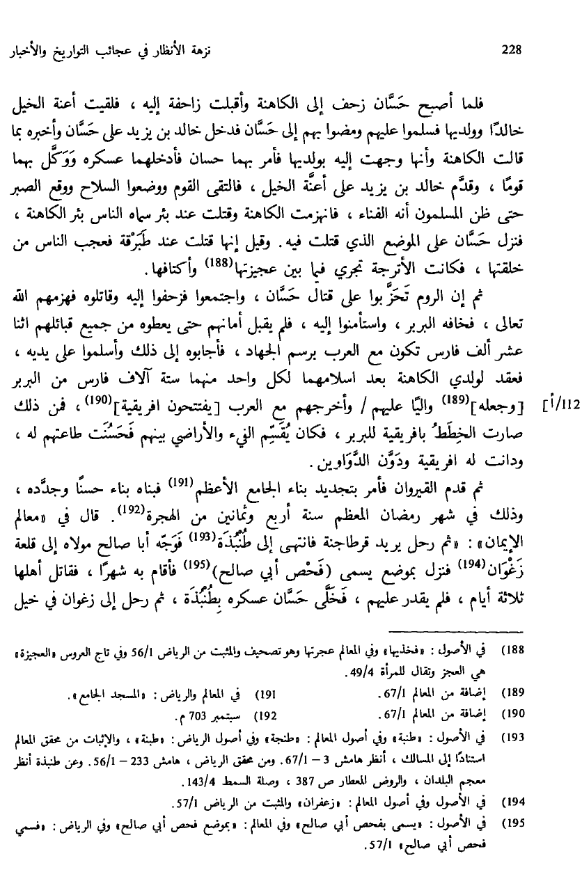 (¬193) في الأصول: «طنبة» وفي أصول المعالم: «طنجة» وفي أصول الرياض: «طبنة»، والإثبات من محقق المعالم استنادا إلى المسالك، أنظر هامش 3 - 1/ 67. ومن محقق الرياض، هامش 233 - 1/ 56. وعن طنبذة أنظر معجم البلدان، والروض المعطار ص: 387، وصلة السمط 4/ 143.