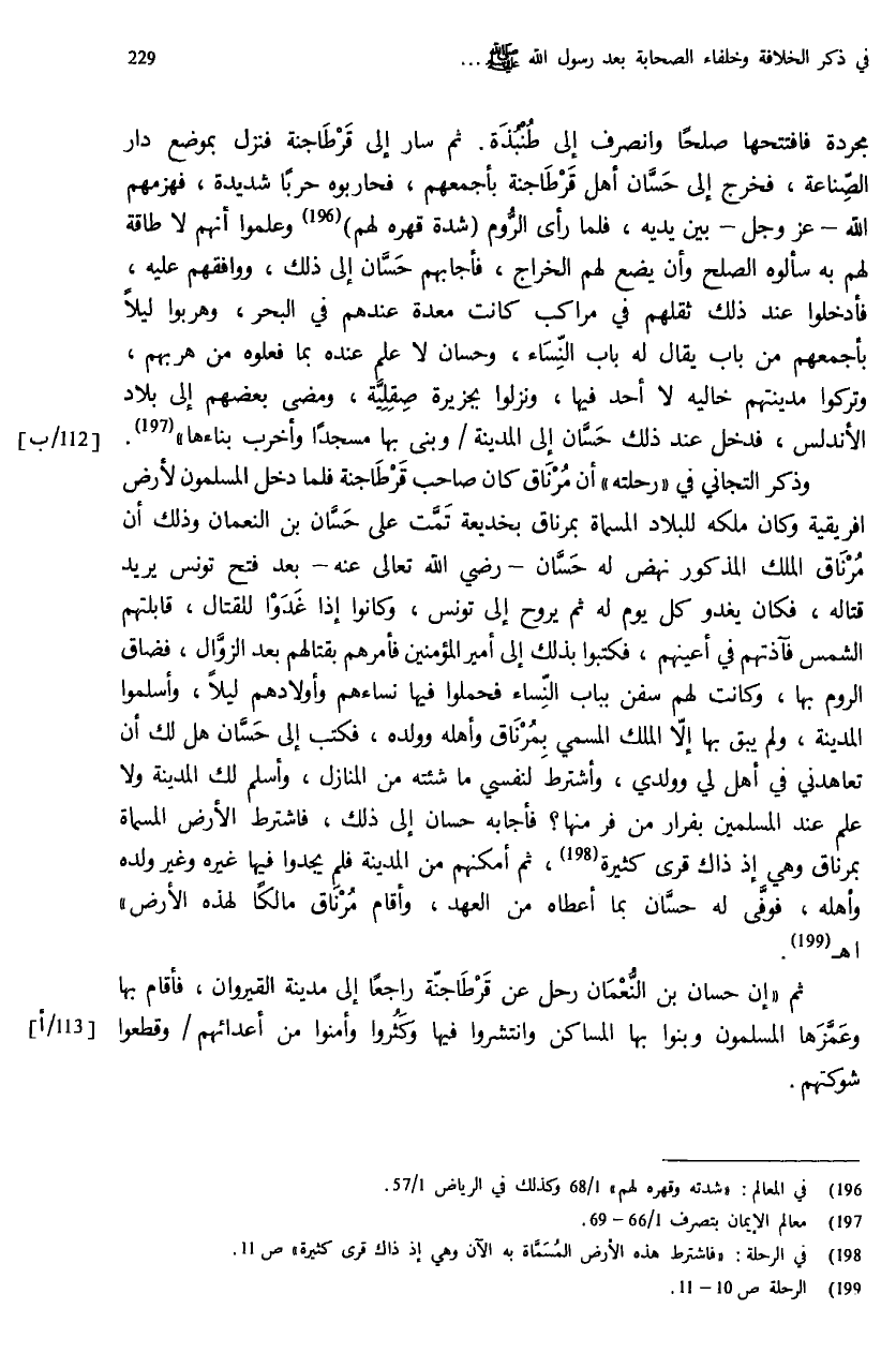 (¬198) في الرحلة: «فاشترط هذه الأرض المسمّاة به الآن وهي إذ ذاك قرى كثيرة» ص: 11.