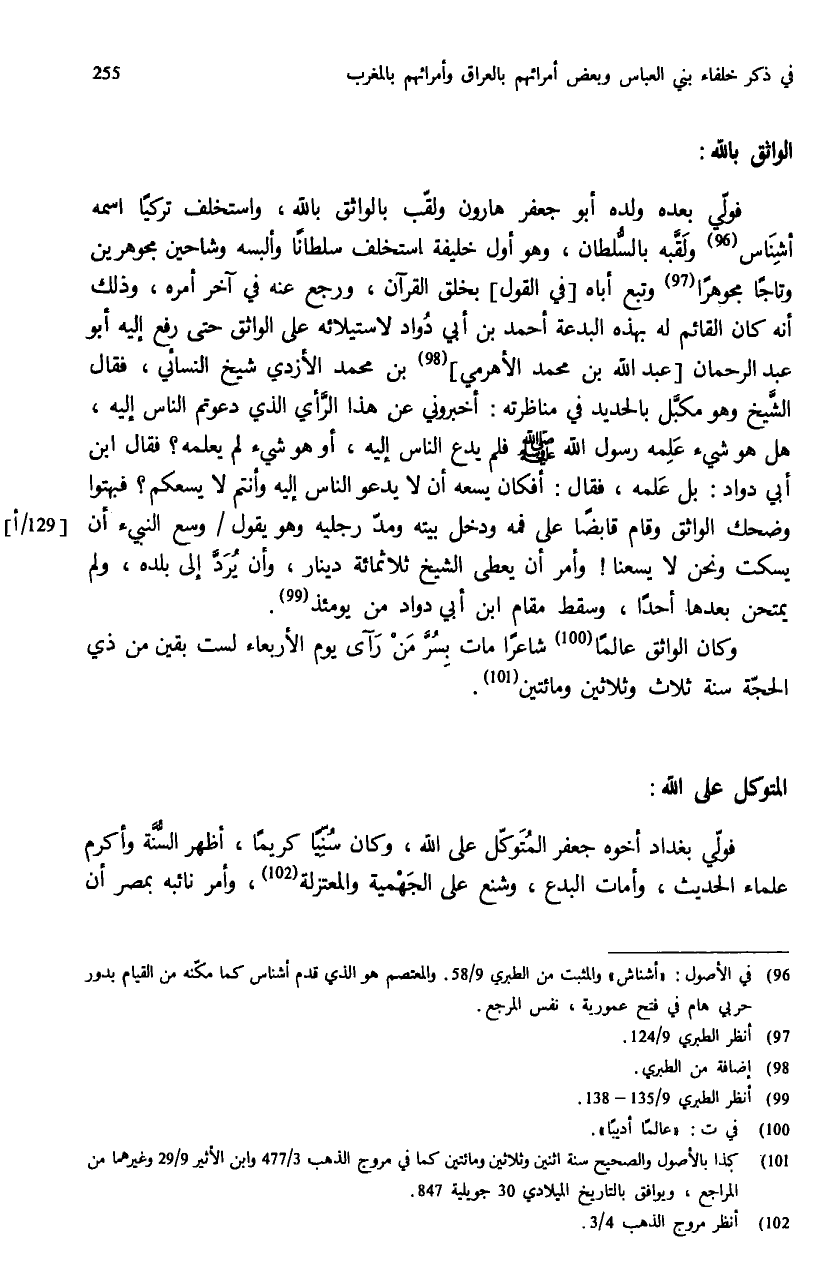 (¬96) في الأصول: «أشناش» والمثبت من الطبري 9/ 58. والمعتصم هو الذي قدم أشناس كما مكّنه من القيام بدور حربي هام في فتح عمورية، نفس المرجع.
