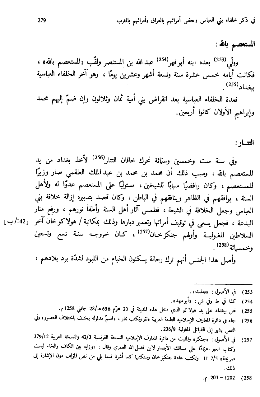 (¬256) جاء في دائرة المعارف الإسلامية الطبعة العربية «تتر وتكتب تتار، «اسم مدلوله يختلف باختلاف العصور» وفي النص يشير إلى القبائل المغولية 9/ 236.