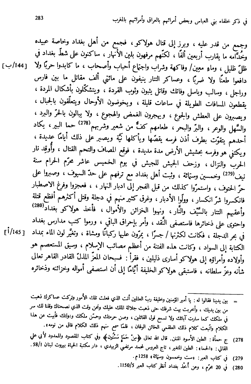 (¬280) في 20 محرّم، وعن أخذ بغداد أنظر كتاب العبر 5/ 1150. =