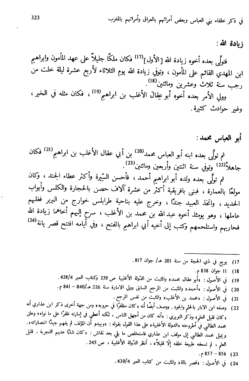 (¬20) في الأصول: «أحمد» والمثبت من المرجع السابق وولي الامارة سنة 226 هـ - 840 - 841 م.