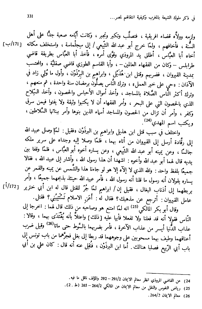 (¬25) رياض النفوس والنقل من معالم الايمان عن المالكي 2/ 264 - 265 (ط.2).