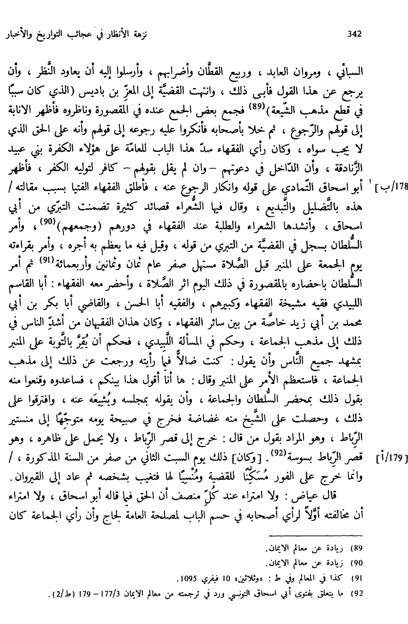(¬92) ما يتعلق بفتوى أبي اسحاق التونسي ورد في ترجمته من معالم الايمان 3/ 177 - 179 (ط / 2).