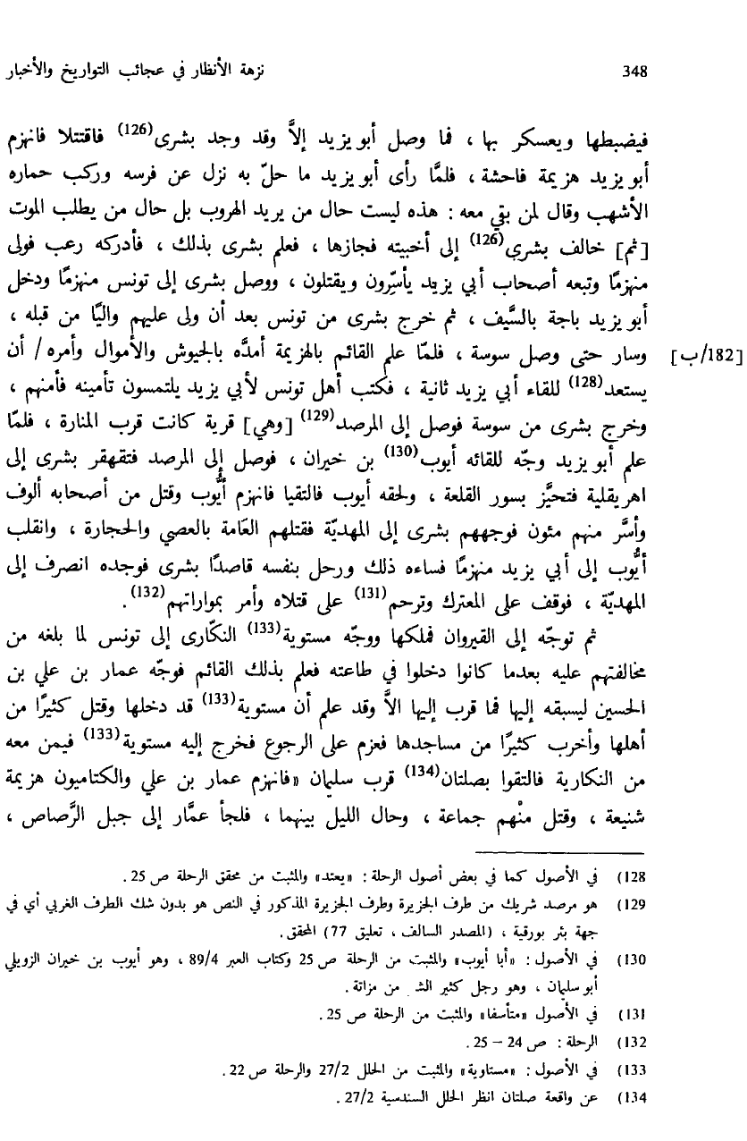 (¬129) هو مرصد شريك من طرف الجزيرة وطرف الجزيرة المذكور في النص هو بدون شك الطرف الغربي أي في جهة بئر بورقية، (المصدر السالف، تعليق 77) المحقق.
