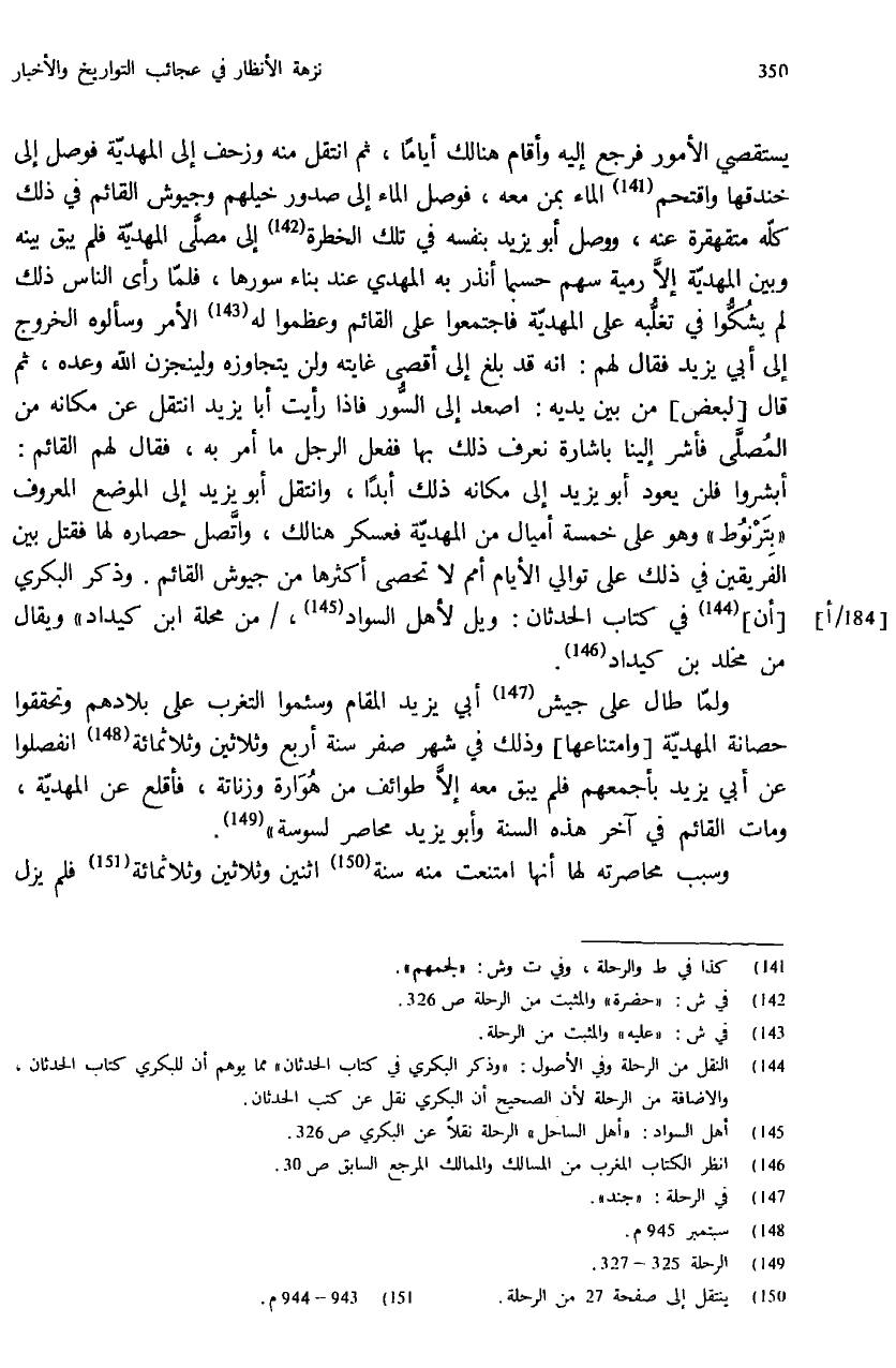 (¬145) أهل السواد: «أهل الساحل» الرحلة نقلا عن البكري ص: 326.