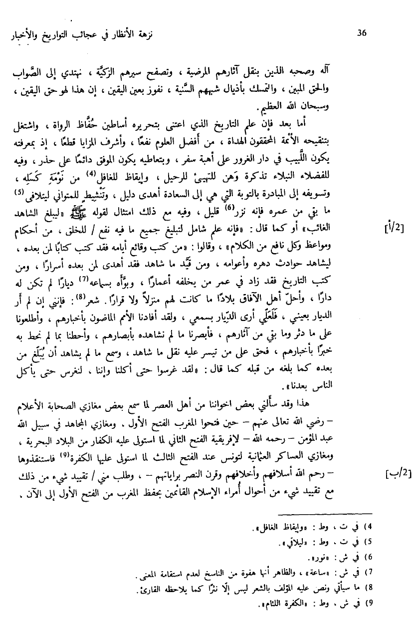 هذا وقد سألني بعض اخواننا من أهل العصر لما سمع بعض مغازي الصحابة الأعلام - رضي الله تعالى عنهم - حين فتحوا المغرب الفتح الأول، ومغازي المجاهد في سبيل الله عبد المؤمن - رحمه الله - لإفريقية الفتح الثاني لما استولى عليه الكفار من البلاد البحرية، ومغازي العساكر العثمانية لتونس عند الفتح الثالث لما استولى عليها الكفرة (¬9) فاستنقذوها - رحم الله أسلافهم وأخلافهم وقرن النصر براياتهم -، وطلب مني تقييد شيء من ذلك مع تقييد شيء من أحوال أمراء الإسلام القائمين بحفظ المغرب من الفتح الأول إلى الآن،