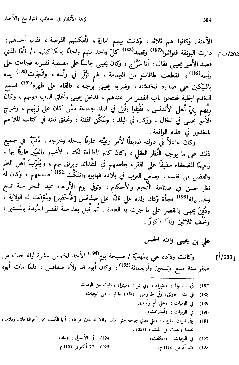 (¬191) وفي البيان المغرب: «بقي يعاني جرحه حتى مات وقالا له حين جرحاه: أيها الكلب نحن أخواك فلان وفلان، نفيتنا وبقيت في الملك» 1/ 305.