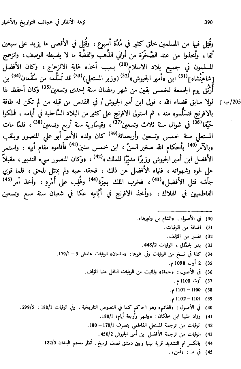 (¬43) الوفيات من ترجمة الأفضل ابن أمير الجيوش 2/ 450.