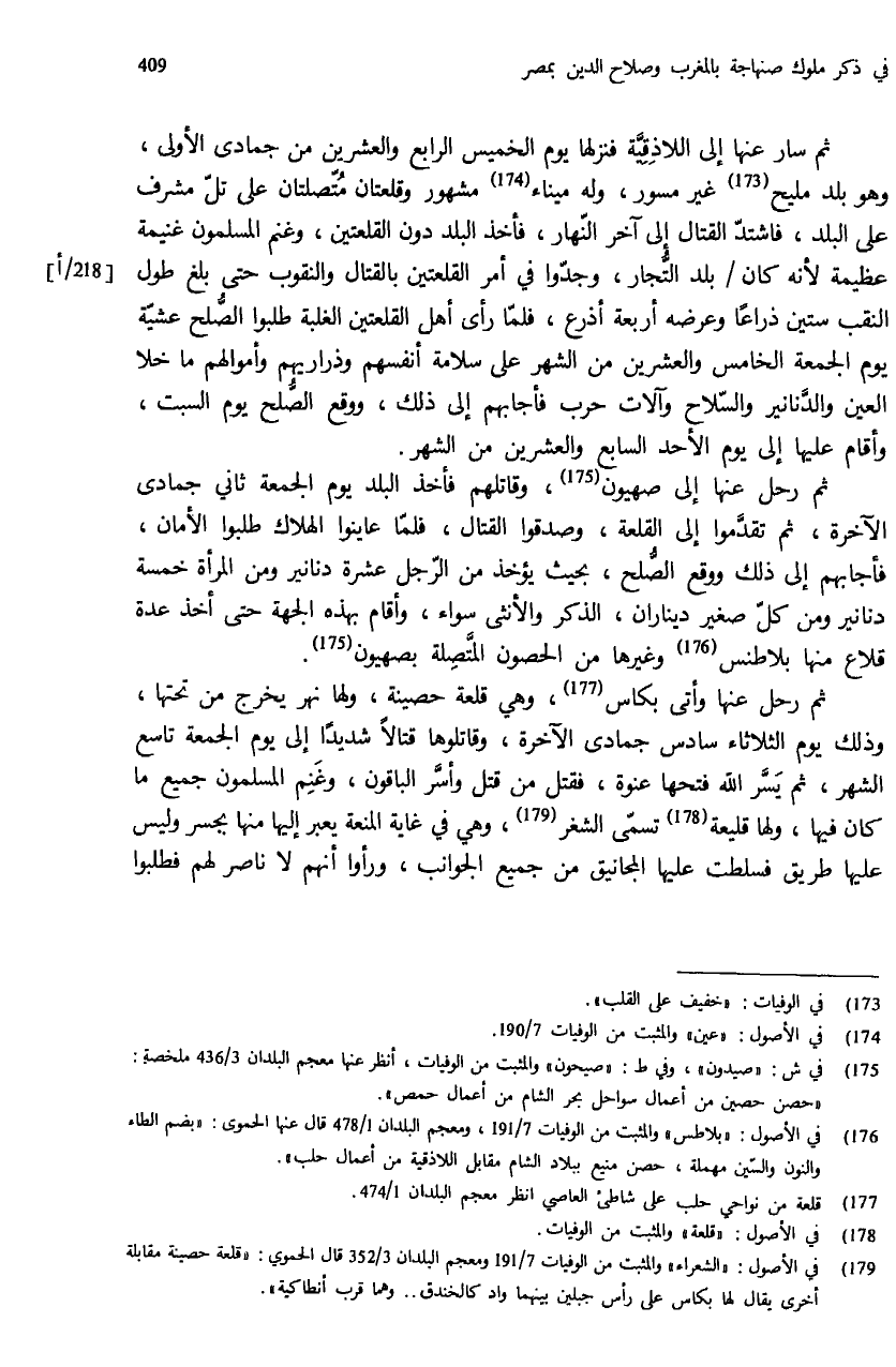 (¬176) في الأصول: «بلاطس» والمثبت من الوفيات 7/ 191، ومعجم البلدان 1/ 478 قال عنها الحموى: «بضم الطاء والنون والسّين مهملة، حصن منيع ببلاد الشام مقابل اللاذقية من أعمال حلب».
