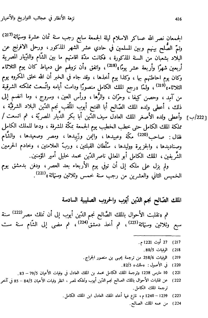 (¬222) عن تقلبات الأحوال بالملك الصالح نجم الدّين أيوب وتملكه لمصر، انظر وفيات الأعيان 5/ 84 - 85 في آخر ترجمة الملك الكامل.