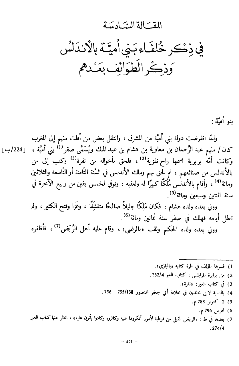 (¬4) بالنسبة لابن خلدون في خلافة أبي جعفر المنصور 138/ 755 - 756.