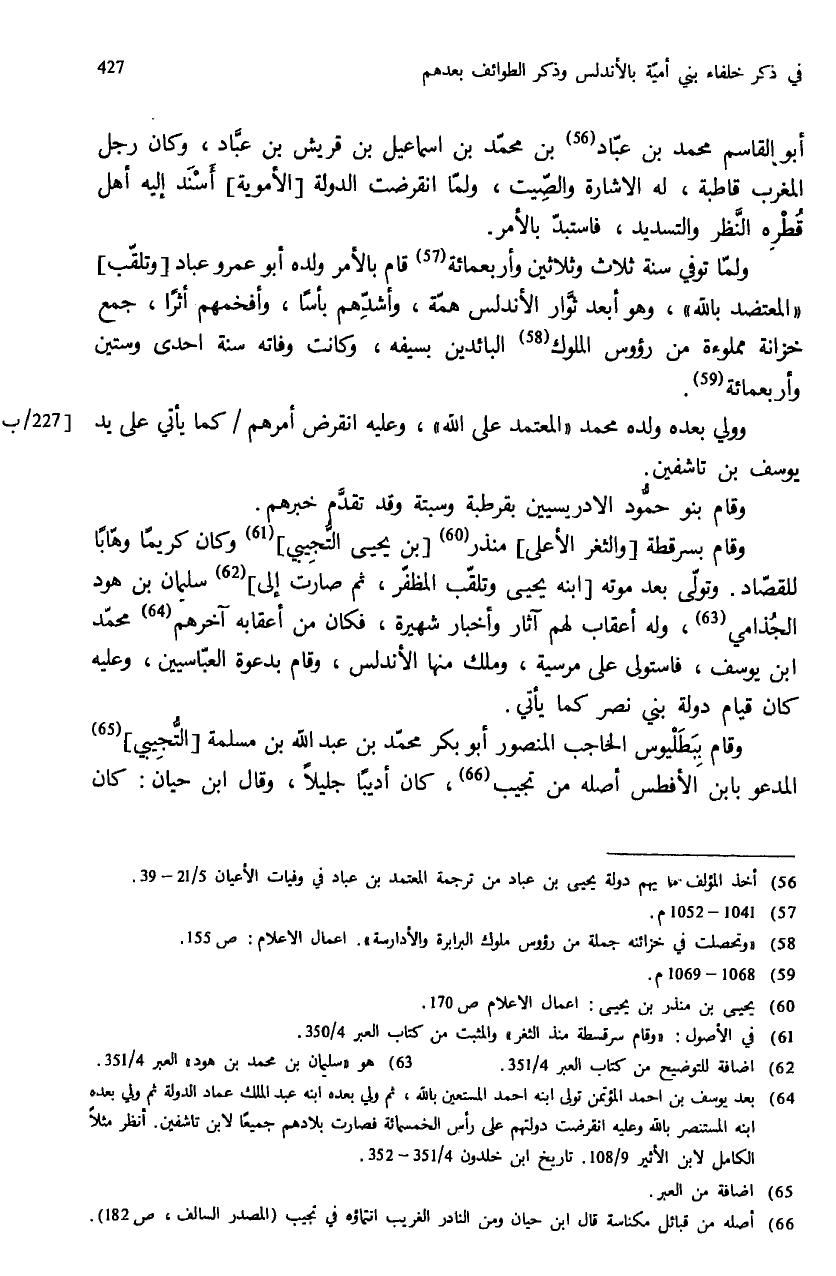 (¬56) أخذ المؤلف؟؟؟ يهم دولة يحيى بن عباد من ترجمة المعتمد بن عباد في وفيات الأعيان 5/ 21 - 39.