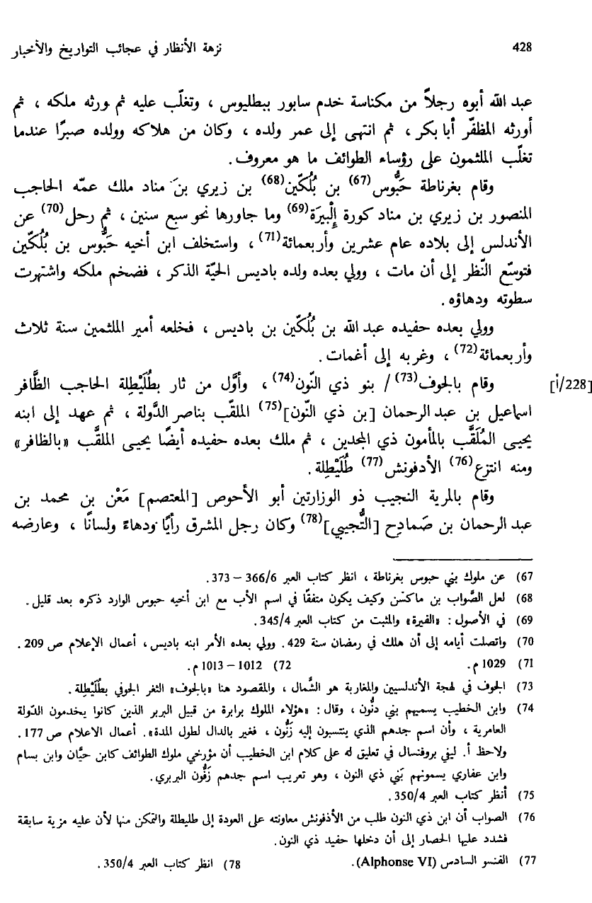 (¬67) عن ملوك بني حبوس بغرناطة، انظر كتاب العبر 6/ 366 - 373.
