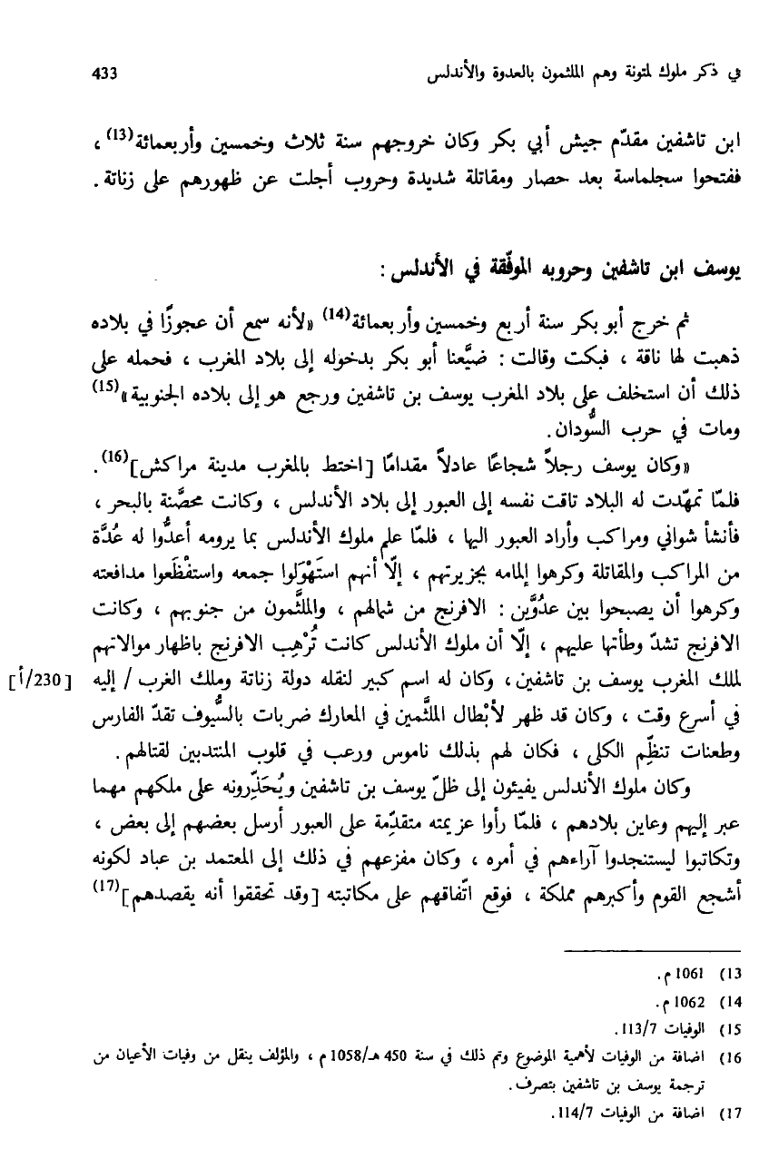 (¬16) اضافة من الوفيات لأهمية الموضوع وتم ذلك في سنة 450 هـ - 1058 م، والمؤلف ينقل من وفيات الأعيان من ترجمة يوسف بن تاشفين بتصرف.