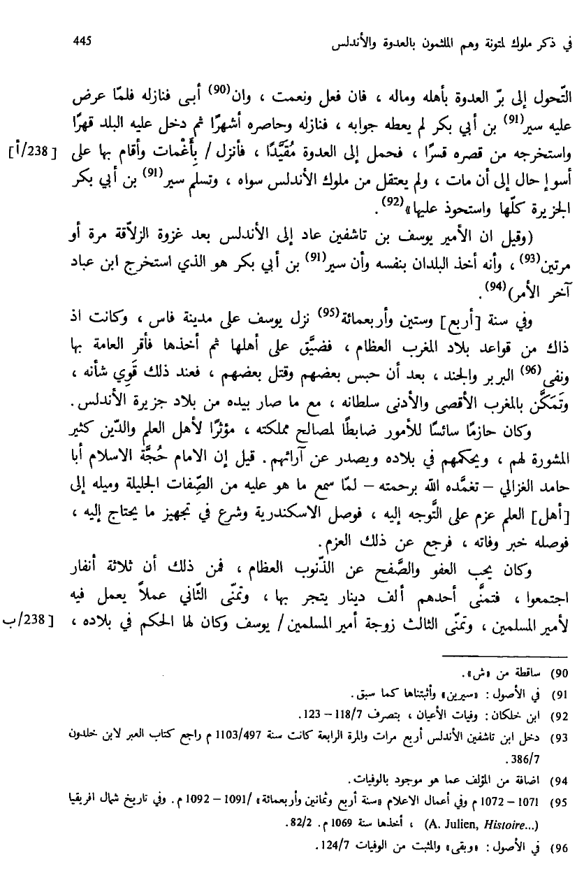 (¬93) دخل ابن تاشفين الأندلس أربع مرات والمرة الرابعة كانت سنة 497/ 1103 م راجع كتاب العبر لابن خلدون 7/ 386.