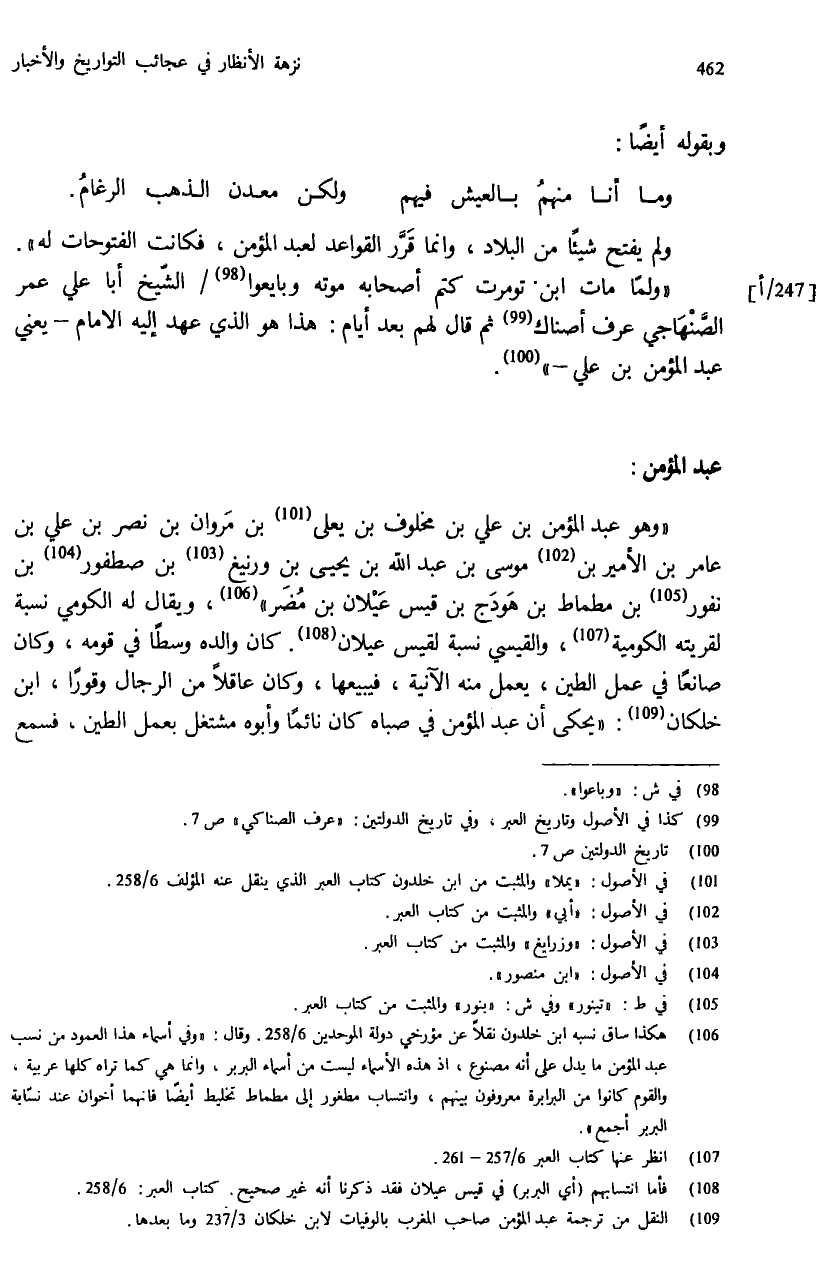 (¬109) النقل من ترجمة عبد المؤمن صاحب المغرب بالوفيات لابن خلكان 3/ 237 وما بعدها.